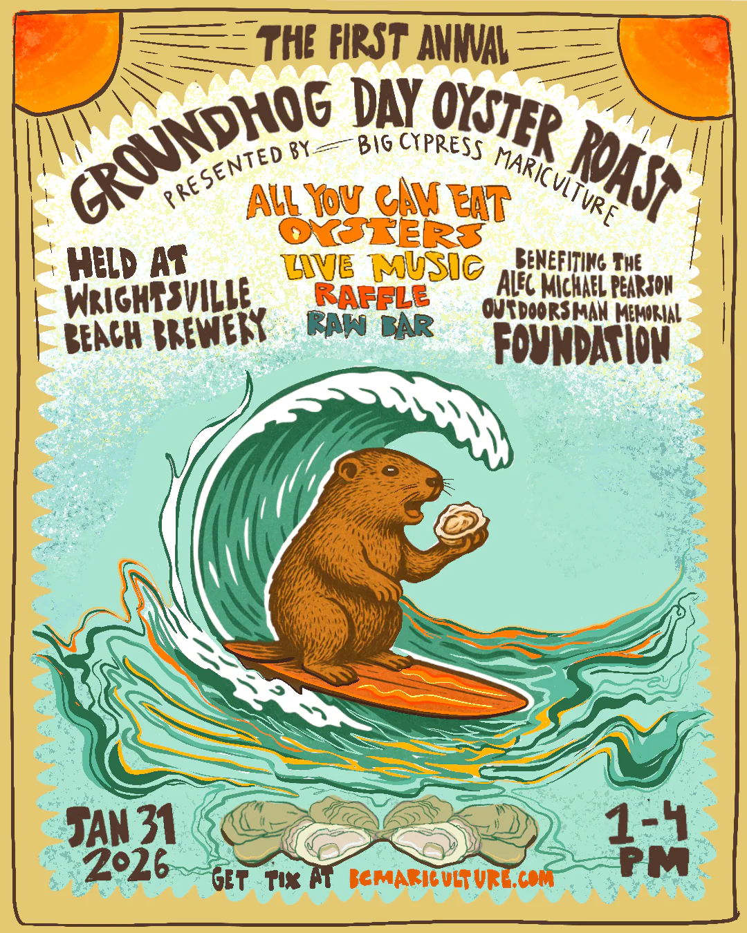 Welcome to the first annual Big Cypress Groundhog Day Oyster Roast! The event will be held on the eve of the eve of G-hog Day (Saturday, Jan 31, 2026) at Wrightsville Beach Brewery. Tickets are now available […]
